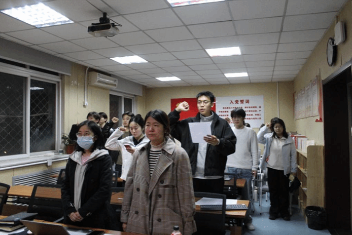 会议最后,全体团员高举右拳,庄严宣誓,重温入团誓词,以铿锵誓言彰显了新时代药苑青年的责任与担当。