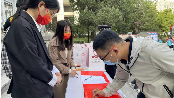 为保证活动的顺利进行,负责活动的秦阿娜老师、辅导员韩晶和学院团委、研究生会、学生会的学生干部及部分2021级新生同学们早早就开始为活动进行充分地准备。负责签到的同学准备好签到物资,请返校的师兄师姐留下为母校的祝福,并为他们送上母校的慰问。