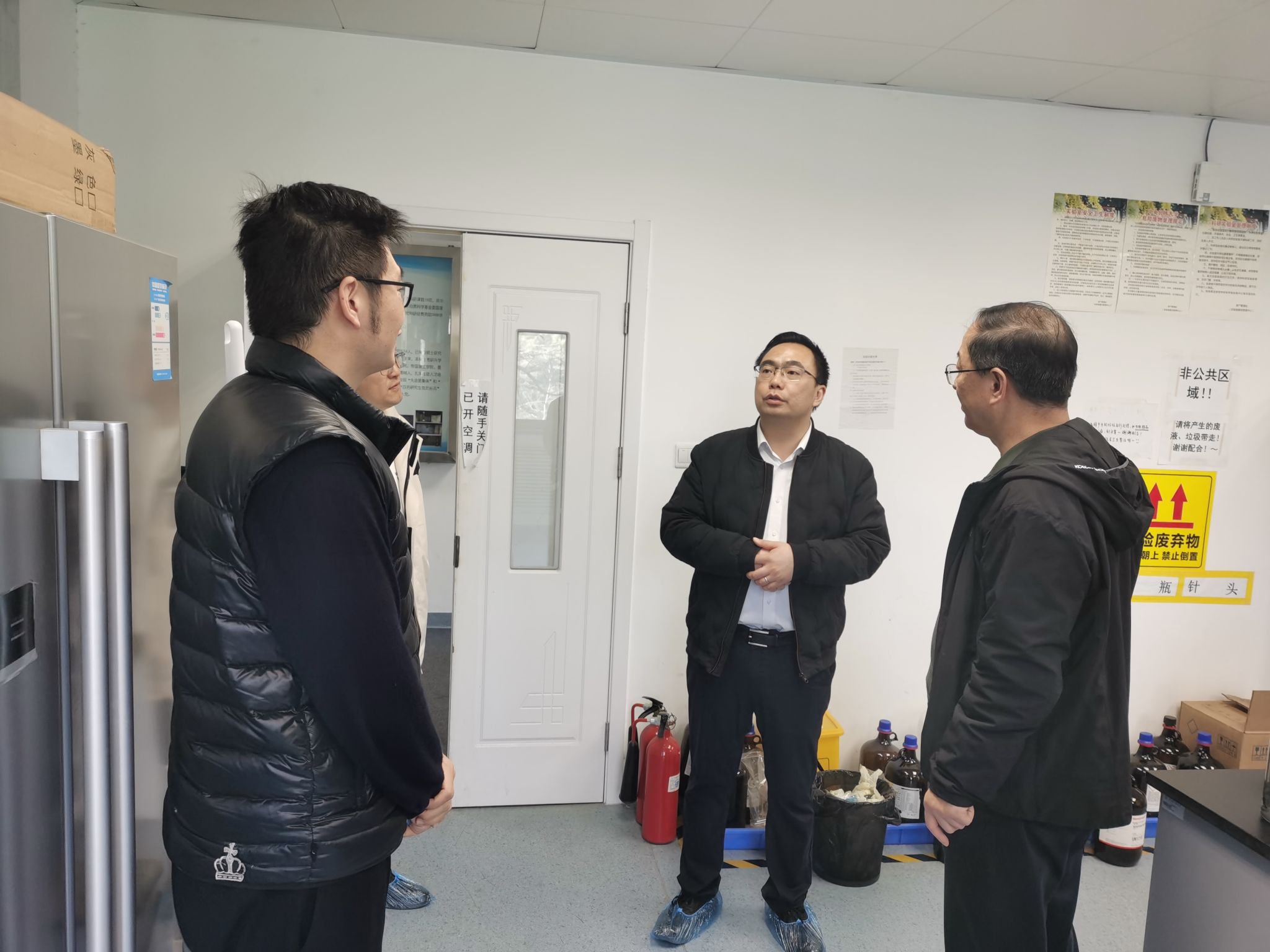 在检查实验室安全时,学院领导对用水用电、危化品管理等进行了着重检查。庞宗然指出,实验室安全直接关系到学校和社会的安全稳定,要以个人生命安全为根本,提前防范,严格规范操作流程,将安全工作落到实处。