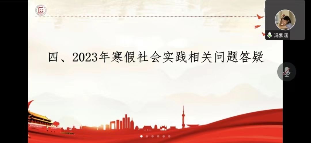 会议内容包括解读2023年寒假社会实践相关要求、公布2023年必威西汉姆联寒假社会实践申报情况、社会实践安全须知及相关问题答疑等四个方面。