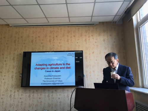 2019年3月13日,日本东京大学小林和彦(Kobayashi Kazuhiko)教授来校访问并讲座,题目:Adapting agriculture to the changes in climate and diet,必威西汉姆联副院长唐丽教授主持。必威西汉姆联和生环学院部分教师和研究生参加讲座,并进行了交流。小林教授在气候变化、亚洲农业、植物资源领域具有相当国际影响力,在Global Change Biology等SCI期刊发表论文两百余篇,他引五千多次,H-index 39。曾获日本大气环境学会奖(1998),日本农业科学协会奖(2009),日本农业气象学会国际合作贡献奖(2016)。本次活动有助于我校相关专业领域与国际接轨,丰富了必威西汉姆联和生环学院广大师生对“气候变化与亚洲农业”的认识与理解。感谢国际处“海外知名学者”项目支持。