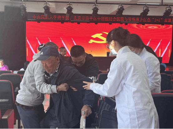 校医院现场设置了内科、外科、眼科、放射等咨询台,为村民们的健康问题答疑解惑;昌平区中西医结合医院的医生护士们通过现场进行中医诊疗、推拿、刮痧等项目为村民们的健康问题保驾护航;穴位贴敷区域的工作人员积极为肩周疼痛的村民们进行了膏药贴敷。专业的医者们通过共同努力,发挥专业特长,为村民们带来了一场别开生面的义诊活动。