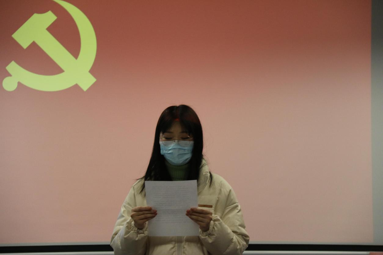 对于15名新党员而言,这是一场终身难忘的入党宣誓,更是一次神圣的精神洗礼,标志着党员政治生命的开始。宣誓结束后,预备党员代表2020级硕士生宋天园同学进行发言。宋天园同学通过分享自己的学习感悟,表达了作为一名预备党员要坚定信仰、锐意拼搏、行动务实的决心,也号召大家积极弘扬抗疫精神,勇担时代责任。