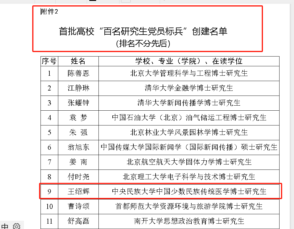 ——搭建“党建育人”载体,支部建在系上,党建与学科共同谋划、共同推进,打造“双组织”架构,“一体化”效果。以立德树人为根本,坚持“大医精诚”理念,培养“懂医精药”的药学类专业人才,获全国高等中医药院校党建和思想政治工作研究会优秀奖,承担校级党建课题2项;加强党建带团建,1名学生党员获教育部首批“百名研究生党员标兵”,学院硕博团支部多次获学校“五四红旗团支部”。