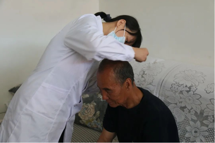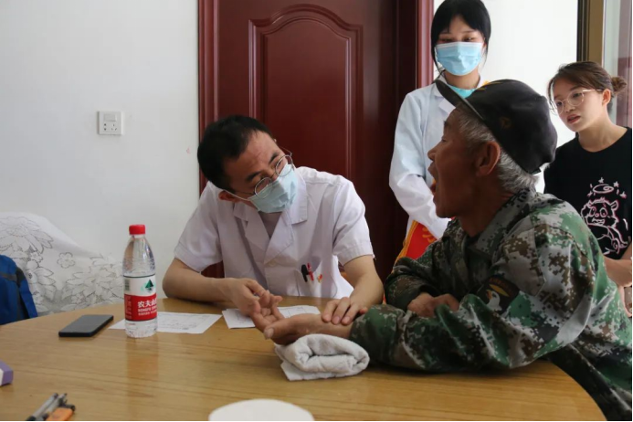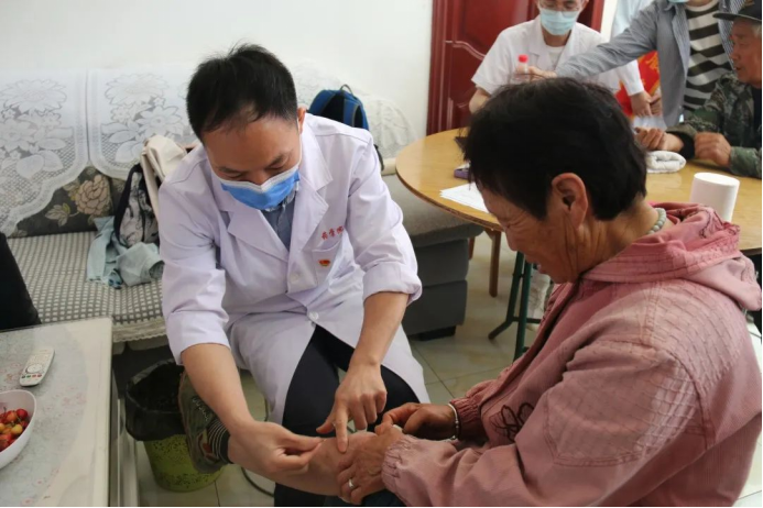 学院李林森老师仔细问询了在场村民的健康状况。了解到村民们多有高血压、糖尿病等疾病,他向村民们给出许多专业的建议,并现场教授了一些针对高血压和糖尿病的中医保健方法。