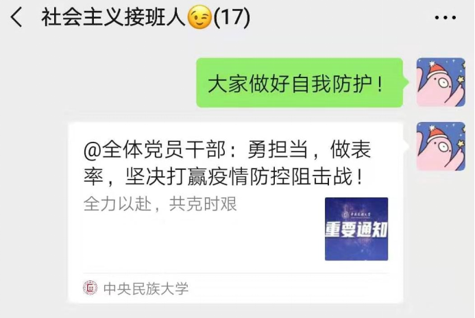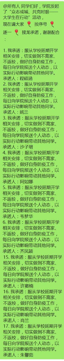 积极响应号召组织大家做好疫情防控、遵守纪律接龙承诺