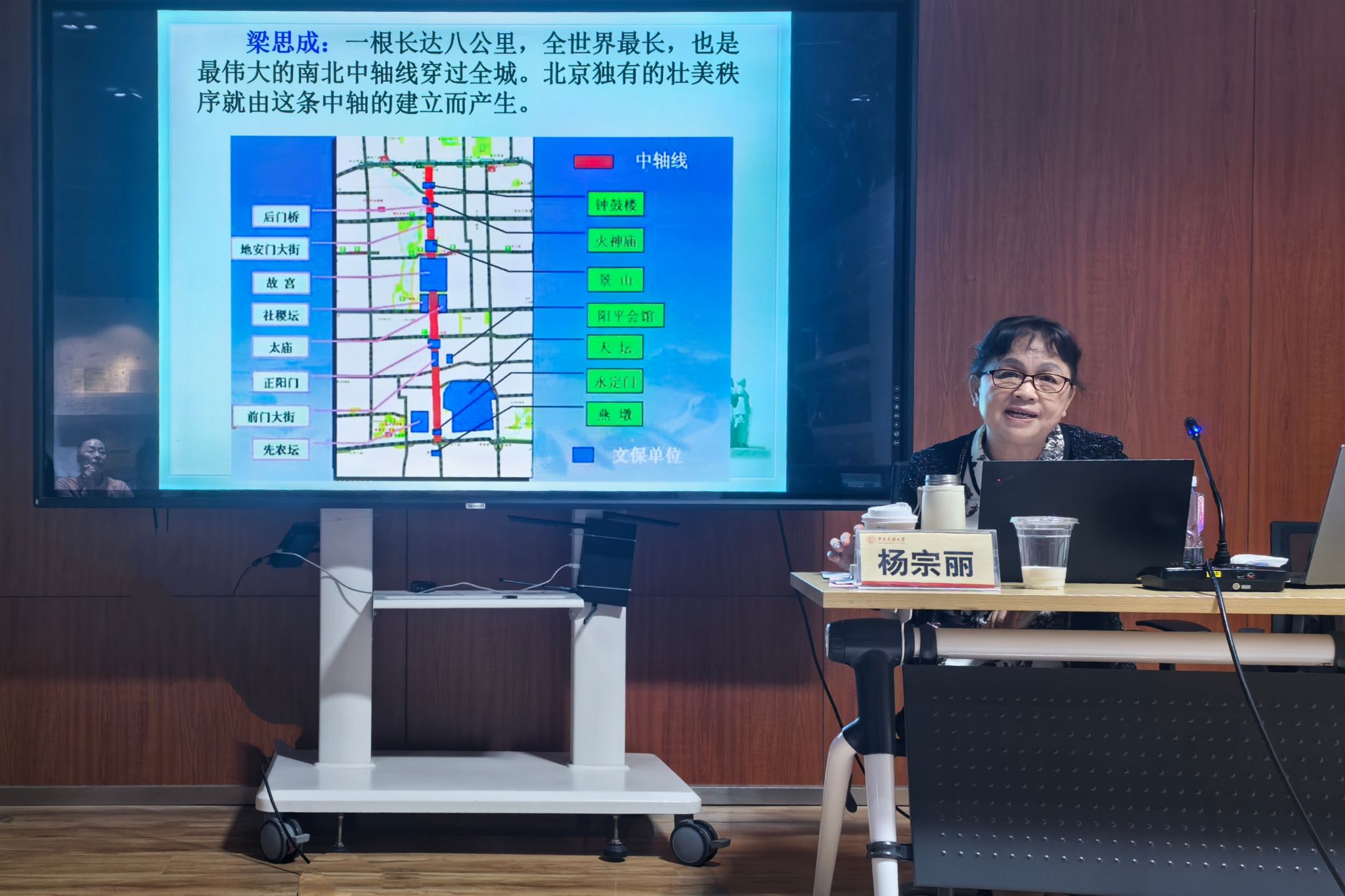 杨宗丽教授以“学习习近平文化思想,坚定文化自信——以北京的历史为视角”为题作报告。她表示,习近平文化思想,是在新时代中国特色社会主义文化建设伟大实践中形成并不断丰富发展的,是对新时代党领导文化建设实践经验的理论总结。这一重要思想内涵丰富、论述深刻、博大精深,是把马克思主义基本原理同中国具体实际相结合、同中华优秀传统文化相结合的光辉典范,丰富和发展了马克思主义文化理论,构成了习近平新时代中国特色社会主义思想的文化篇。她结合自身的所见所闻所感,深入浅出、旁征博引,详细阐述了习近平文化思想的道理学理哲理、中华优秀传统文化的丰富内涵,以及建设中华民族现代文明的实践要求。