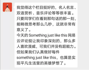 对于这个活动,我私下采访了一些同学,想了解是否起到积极作用,同学们都反馈这个活动很有意义。