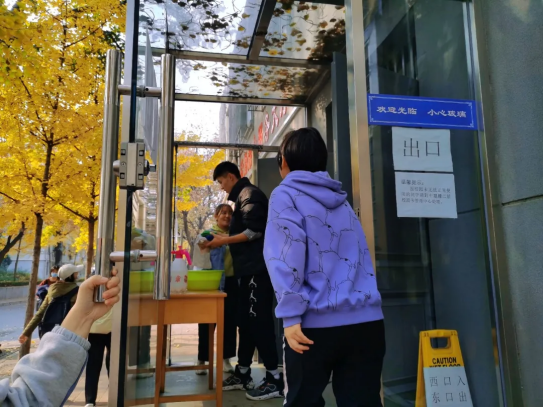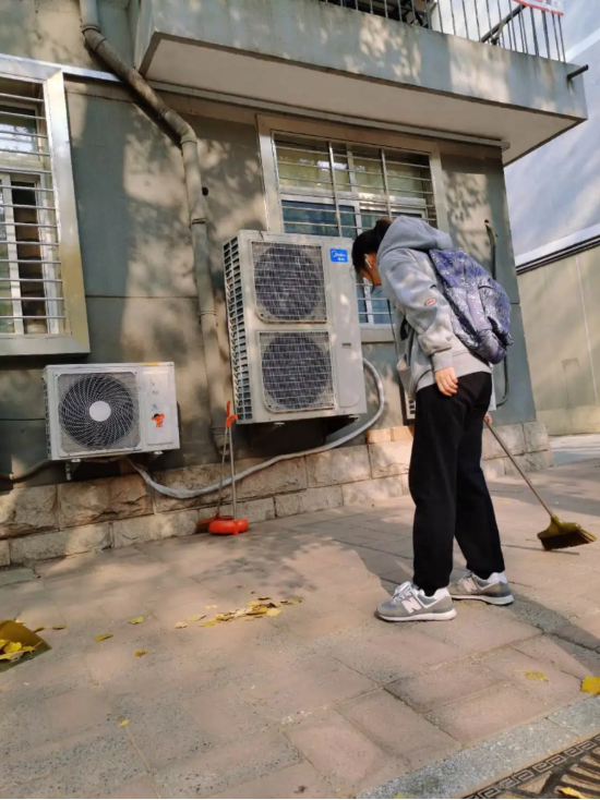 其余同学负责服务大厅门前的落叶清扫工作,凉风习习,落叶纷纷,满地金黄固然美丽,但保持校园干净整洁仍然是同学们的责任。