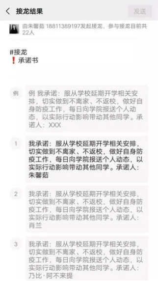在全国疫情发展势头最为迅猛的时期,学校连发三封信给全校师生,致以问候、提出倡议,学院迅速落实我校关于疫情防护的重要通知,先后摸排确认同学们到家情况、在校情况、所在地状况,每日了解大家身体状况和所在地点,开展网络主题活动……