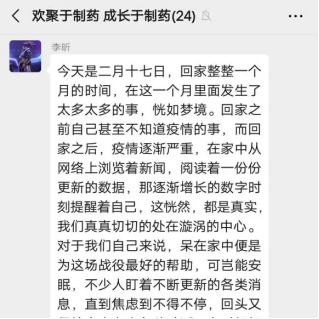 朱馨茹说,我的导师赵焕虎老师和师兄杨康博士也加入了这场没有硝烟的战争,春风微冷,人间滚烫,期待庚子年春天的再相逢!
