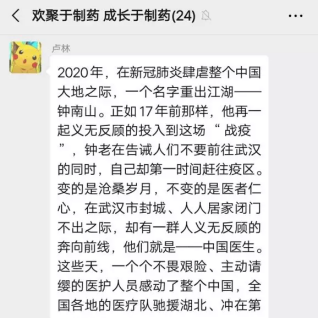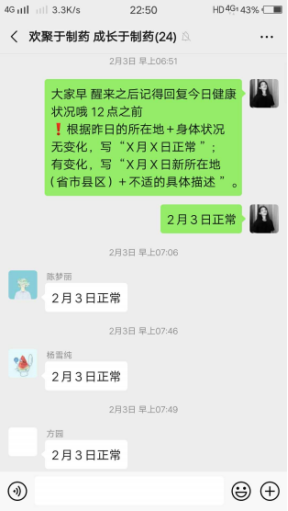 2016级制药工程班全体同学积极配合学校及学院的工作安排,每日主动、及时反馈个人状况,线上接龙承诺书,观看《老师请回答》特别节目,观看《中国医生》纪录片。在此基础上,召开“讲好中国故事,致敬中国医生”线上主题班会。一个班为一个团支部,此次班会也是团日活动的重要载体。