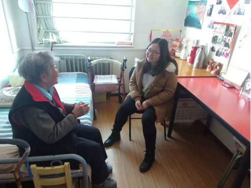 清晨,志愿者在丰台区集合后,于北京义工联盟领队的带领下,两两分组,在爱心敬老院开展敬老尊老志愿服务。参与的同学各有分工,有的到各个楼层的房间,陪老人们拉拉家常、讲讲笑话、讲讲养生小知识,给爷爷奶奶们带去欢笑和快乐;有的帮助他们整理内务,打扫卫生,捶捶背,使老人变得轻松;
