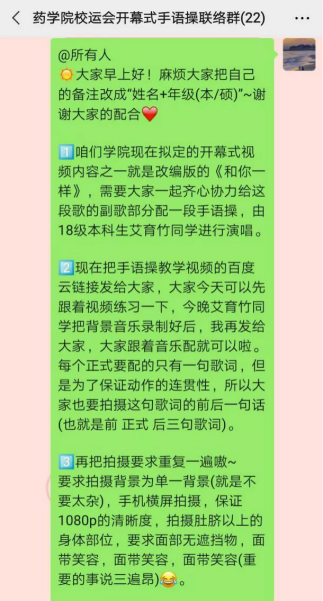 通知发出后,院团委老师迅速部署,带领学生干部,团结全院本、硕、博学生,共同制作拍摄了《和你一样》校运会开幕式视频。短短几十秒的镜头,1名老师、4名博士、13名硕士、22名本科倾情出镜,展示学院抗“疫”风采,表达思念和祝福,助力“云端”体育文化节。