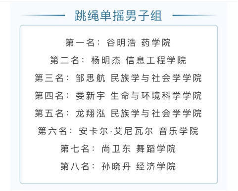 春光融融,万物灵动,民大十分想念你。2020年春季体育文化节如约而至,经师生共同努力,学院实现点上开花,团体、个人均喜获一项“冠军”。