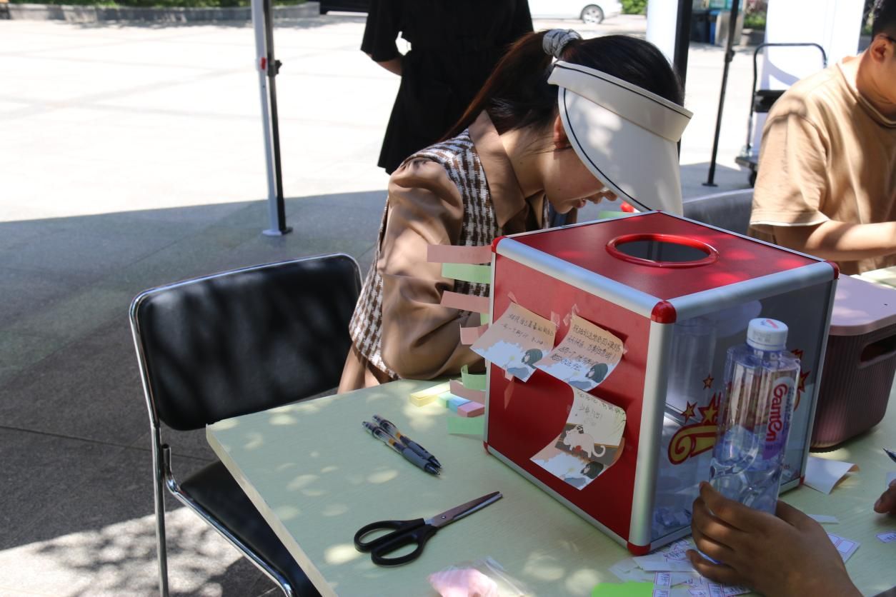 在交换心情盲盒游戏环节中,同学们在便签纸上写下自己的焦虑或是烦恼,然后将便签纸折好放入盒子里,并从安慰盲盒中随机抽取一张纸条,随后写下一张鼓励便签贴在安慰盲盒外侧。参与本次活动的同学中是否在小小便签纸上感受到了来自其他同学的温暖?心里的烦恼与压力是否有减轻呢?
