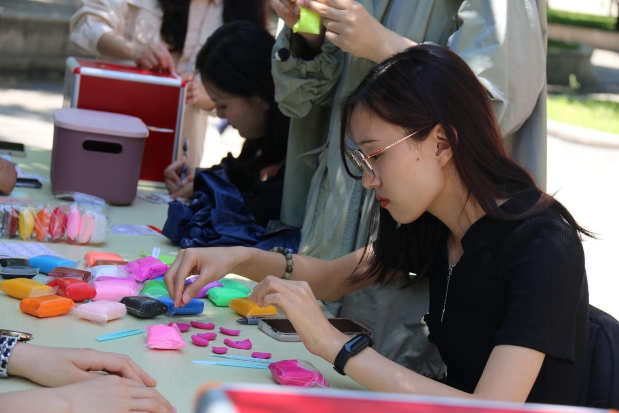 为深入开展学习贯彻习近平新时代中国特色社会主义思想主题教育,结合学院工作实际,5月13日中午,必威西汉姆联在8号楼前小广场开展了心理文化节系列活动中的“解忧路边摊”心灵游戏板块内容,在帮助同学们丰富课余生活、调节心理问题的同时,也增强了同学间的默契和友谊。本次活动吸引了大量同学参与游戏与互动,也有部分老师和部分丰台校区的同学参与其中。