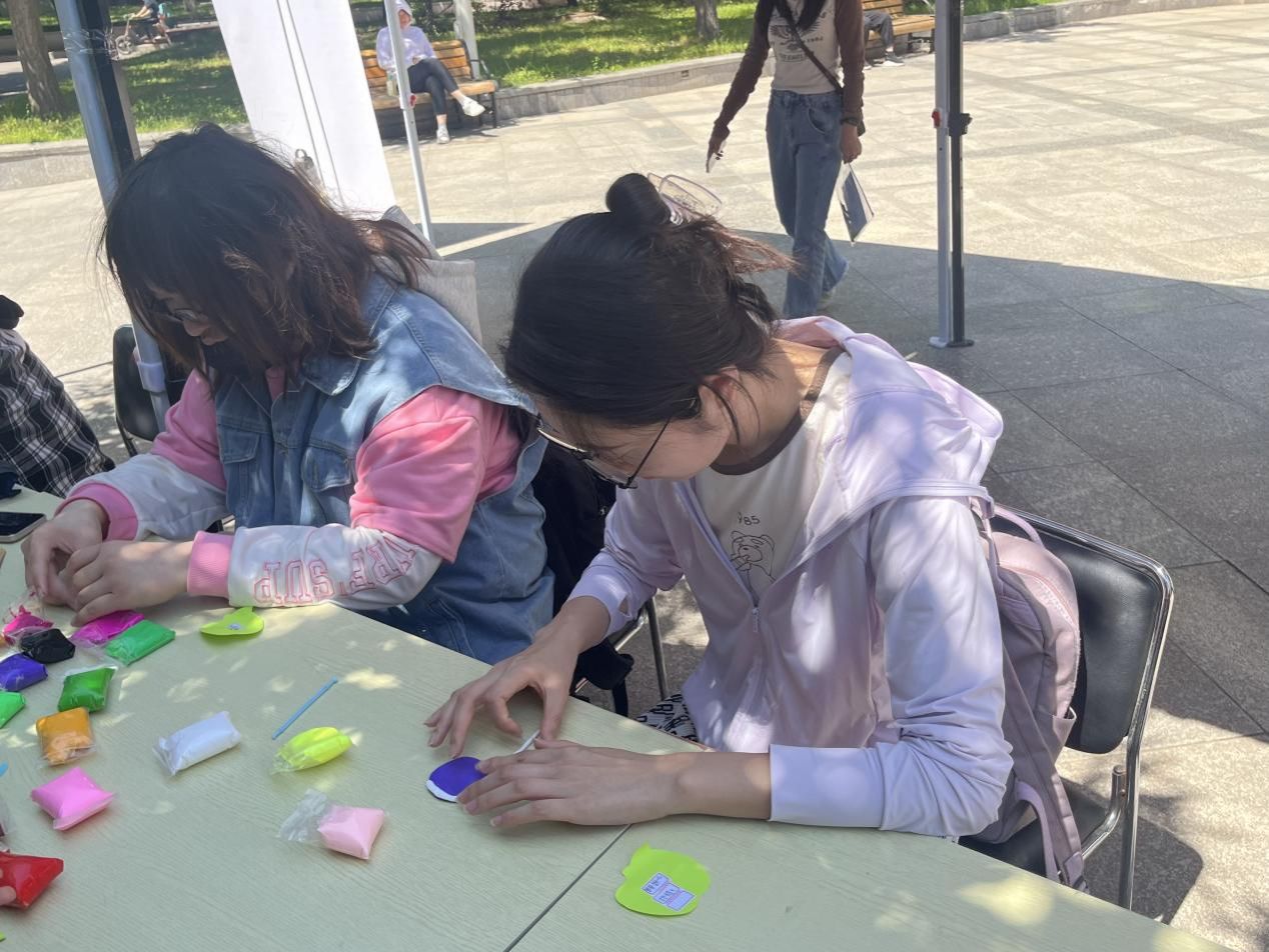 在解忧路边摊游戏环节中,同学们任取橡皮泥捏成自己喜欢的形状,通过捏橡皮泥的过程释放释放压力,并将捏好的橡皮泥成品放置作品展览处。有时候我们会因为各种压力而感到压抑和沮丧,这时不妨拿起一块橡皮泥,用手指捏和搓揉它,可以缓解焦虑和紧张,也可以让我们在玩耍中忘却烦恼,释放内心压力,让自己心情愉悦。