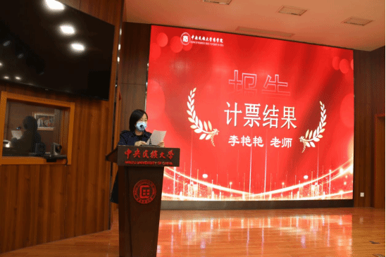 【学院办公室、党团与学生工作办公室主任李艳艳老师宣布计票结果】