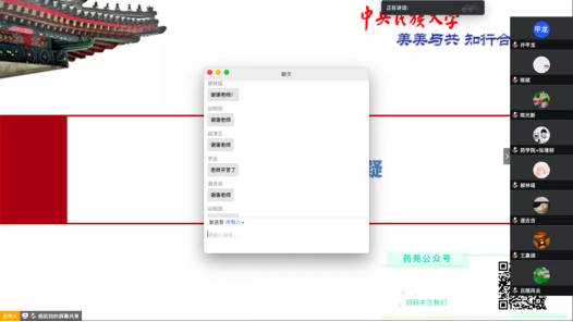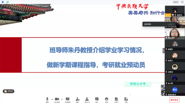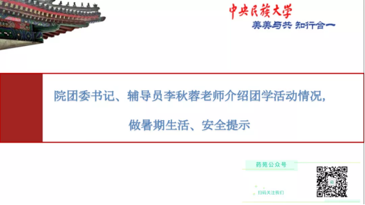 接下来,李秋蓉老师回顾了寒假以来举办的各类活动,对同学们疫情期间在家努力学习、健康生活提出表扬,对家长和同学们的全方位支持表达真挚感谢,传达了学校和学院暑假期间学生疫情防控的相关规定,并做健康安全教育,强调非京异地活动要取得家长同意,报学院批准,务必确保自身安全。特别提醒大家,会后要仔细梳理朱老师带来的满满干货,以此制定暑期计划、新学期目标。