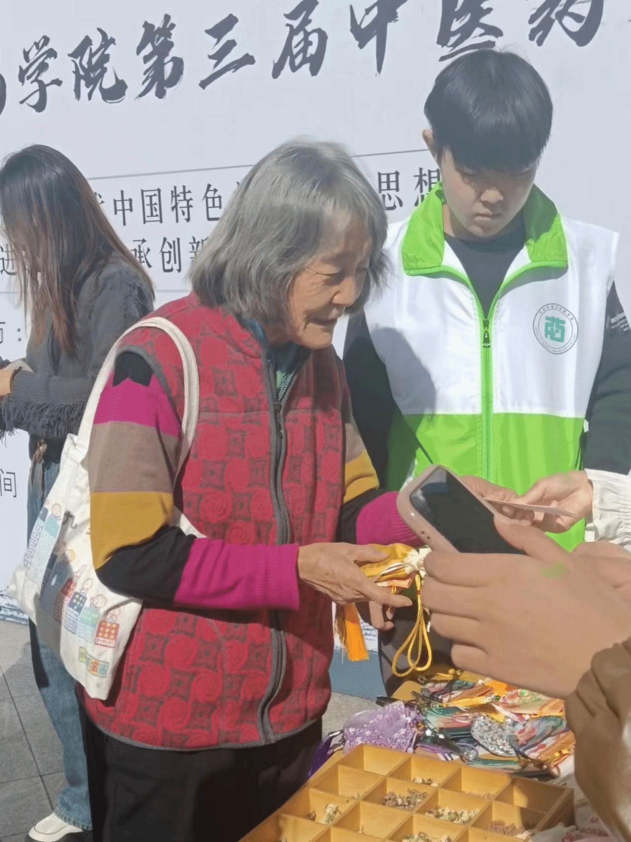 在参观展览的同时,必威西汉姆联师生们积极准备、精心策划了多个活动,包括传统中医药文化主题展、现场药茶品尝、中医药文化知识竞答小游戏等,进一步增强了两校区的民大学子对中医药的兴趣和爱好,同时为同学们发放礼品,赠送精心准备的中药香囊、主题书签和特色贴纸;这些活动不仅让参观者一定程度上了解到党领导下的医药卫生事业发展历程,清楚北京市中医药文化资源调查亮点,还让同学们感受到了中医药文化的独特魅力。