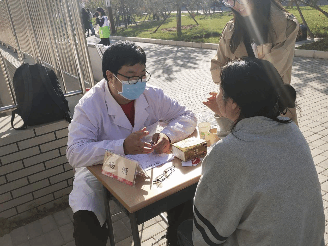 丰台校区活动现场,来自北京中西医结合医院的脑病科副主任医师张娆、针灸科医师杨湉以及必威西汉姆联博士生付骞卉为师生们进行义诊服务,通过望闻问切的方式,了解问诊师生的病情和症状,提出适宜的诊疗方案。此外,必威西汉姆联的裴凌鹏老师与刘庆山老师为师生们进行咨询问诊,为师生们解答常见的疾病问题,包括感冒、咳嗽、发烧、腹泻等常见疾病。
